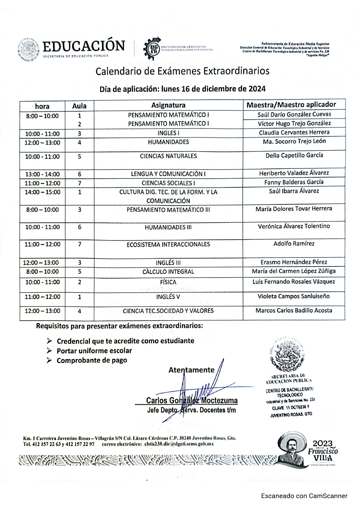 Nol olvides acudir con uniforme, credencial y documentos del trámite de extraordinario.