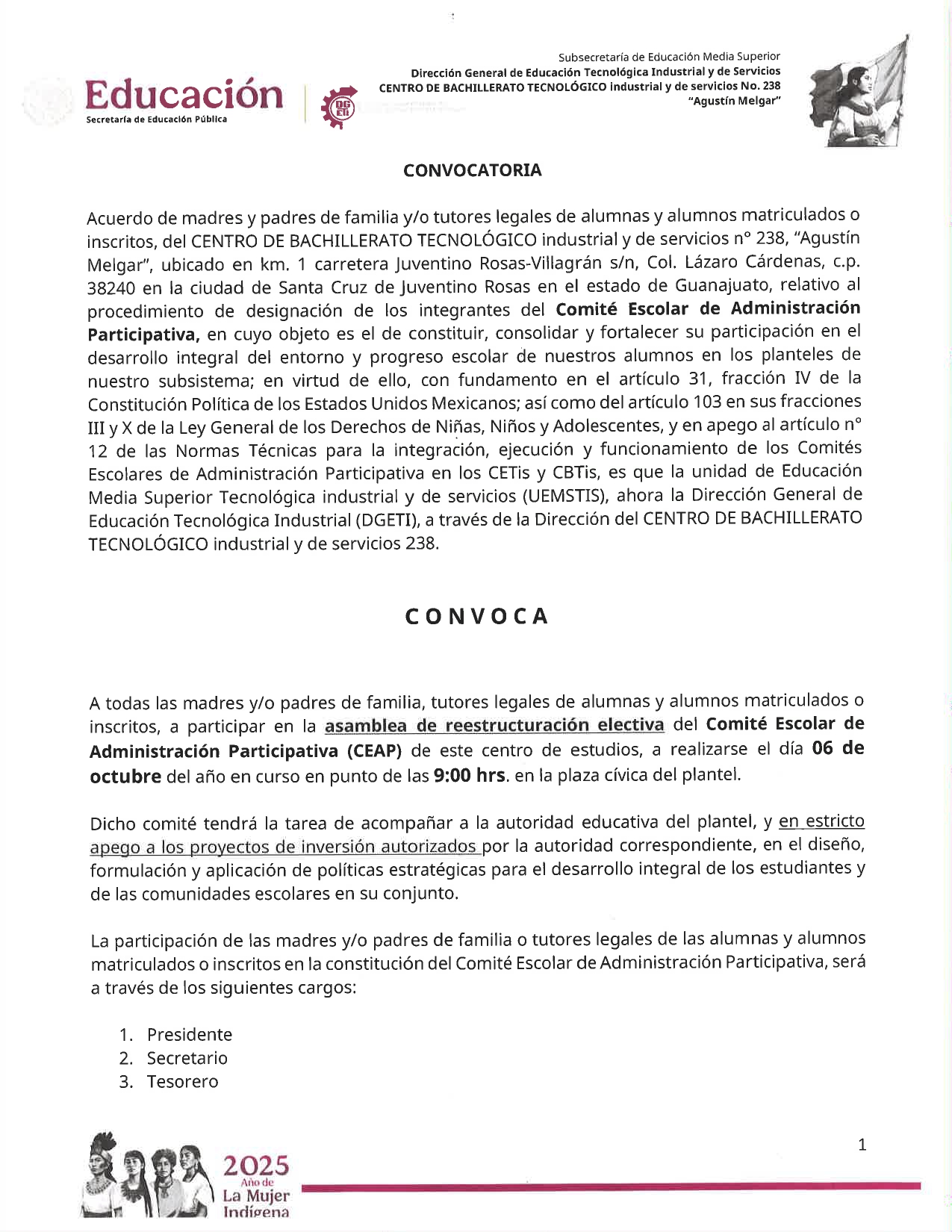 Asambleas De Restructuración Del Comité Escolar De Administración Participativa (CEAP) 2025